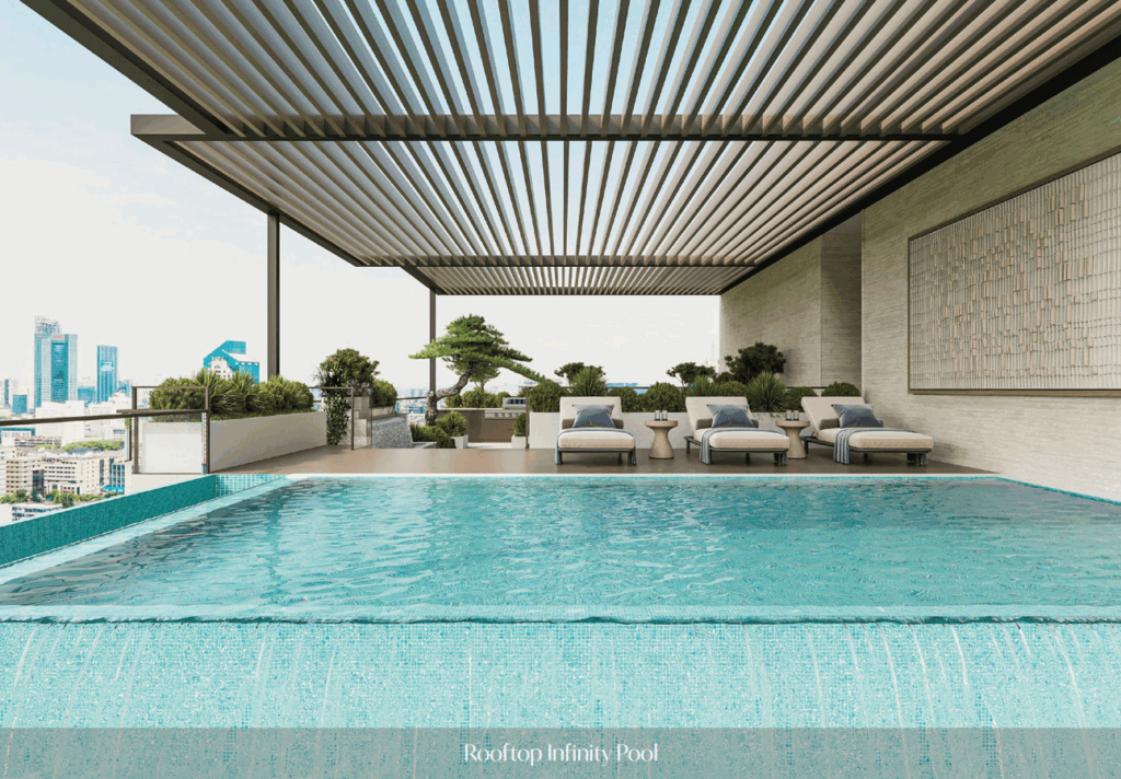 Willkommen in Ihrem neuen Zuhause! Begeben Sie sich auf eine Entdeckungsreise durch diese stilvolle 2-Zimmer-Wohnung mit privatem Pool. Beginnen Sie Ihren Tag mit einer erfrischenden Runde im Resort-style Swimmingpool oder genießen Sie mit Ihren Kindern den Spielbereich. Für Entspannung sorgt der meditative Dachgarten und die BBQ-Zonen laden zu geselligen Abenden ein.