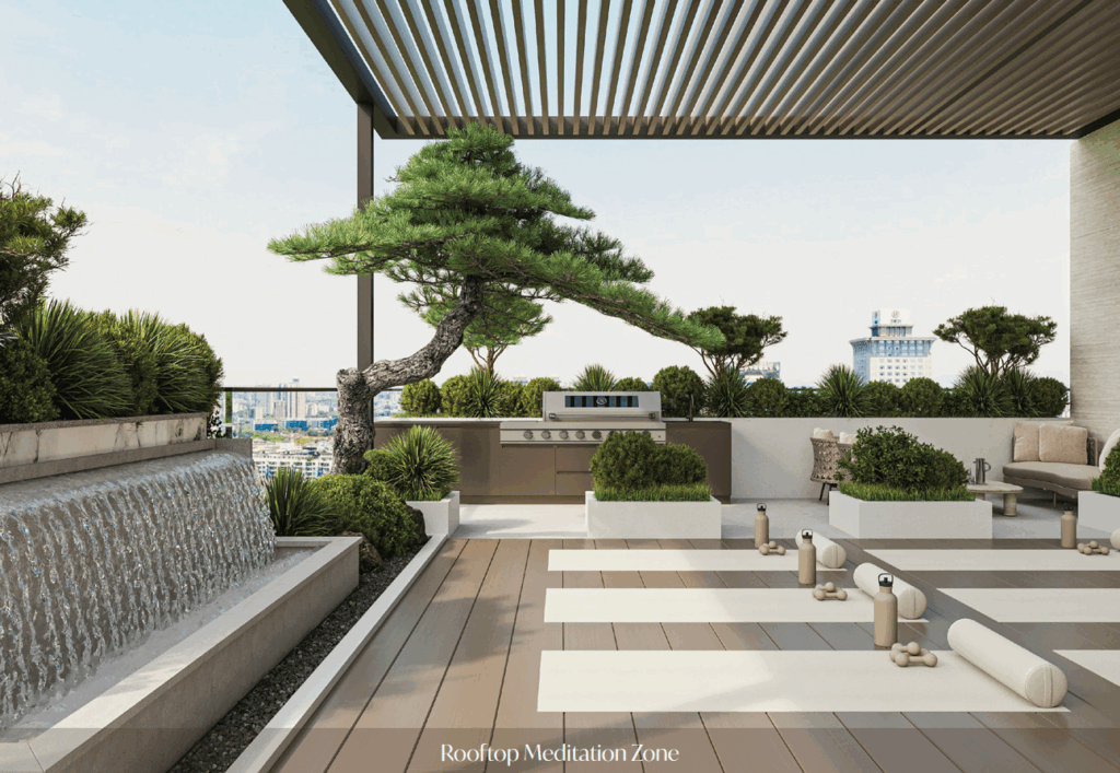 Die üppig gestalteten Gärten und der Fitnesscenter bieten Ihnen die Möglichkeit, sich inmitten der Natur fit zu halten. Darüber hinaus lädt der Zen-Garten zum Verweilen und Abschalten ein. Die Clubhaus und die großzügige Lobby sind perfekte Orte, um sich mit Nachbarn zu treffen.